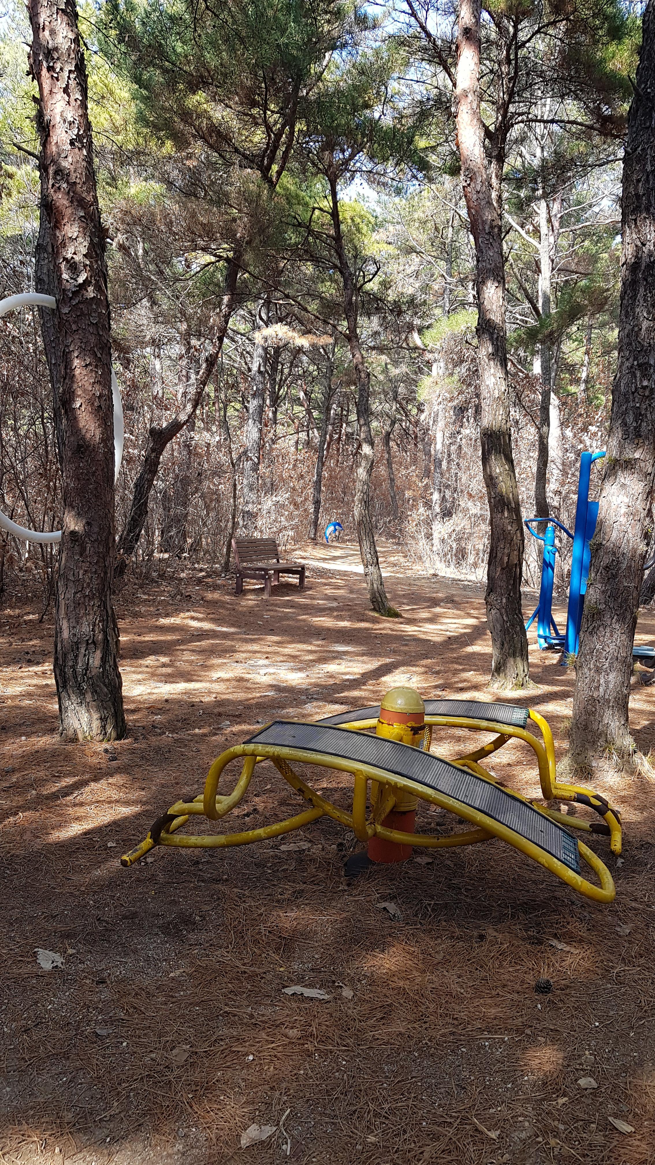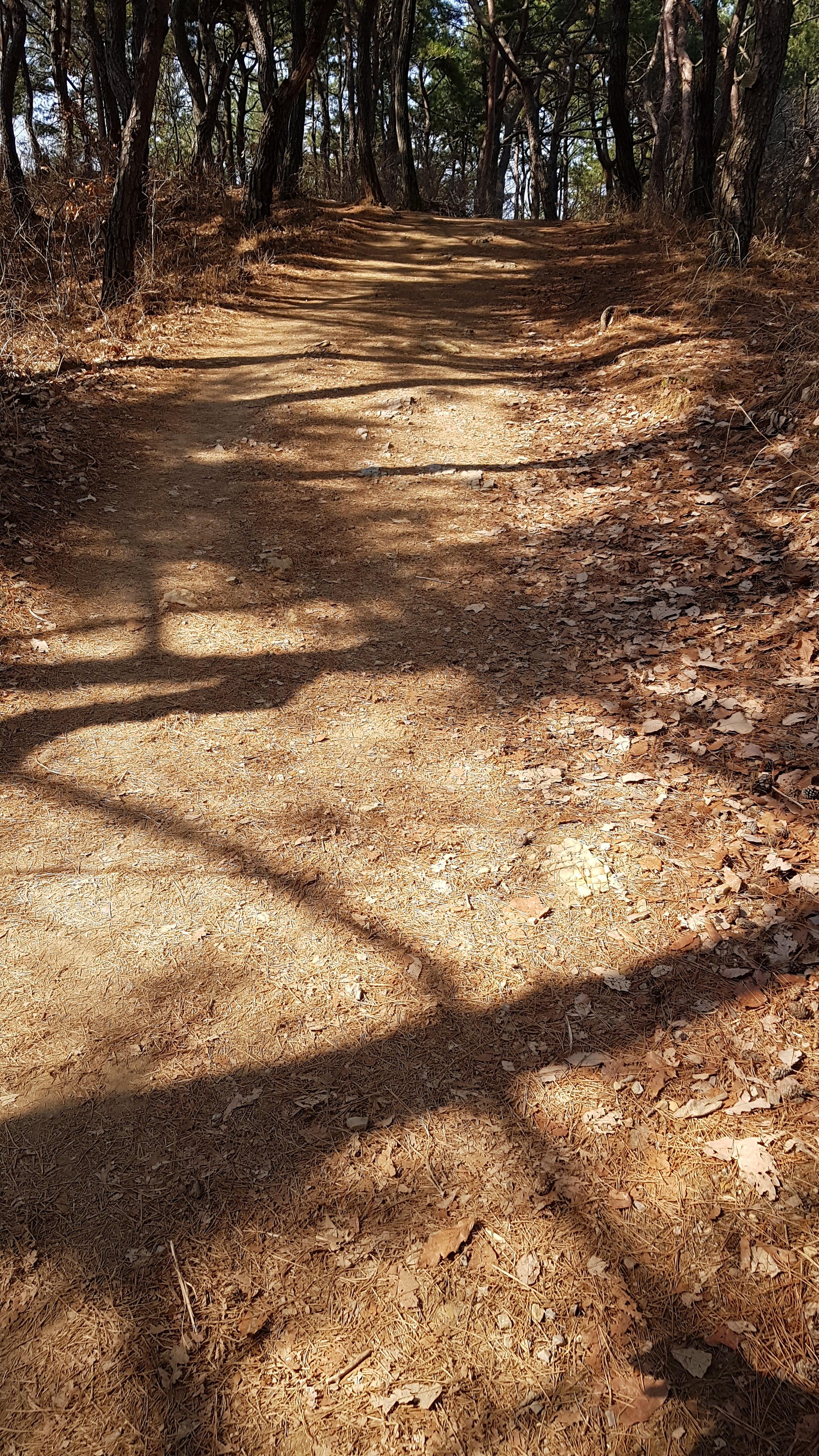 산길이 험하지 않고 약간의 언덕이 있고 비교적 평탄해서 산책하기 좋아요. 저는 짧게 대공원에 있는 산으로만 다녔어요. 공원에서 산으로 진입하는 경로가 많으니 가다가 힘들면 중간에 공원으로 나올 수 있어요.