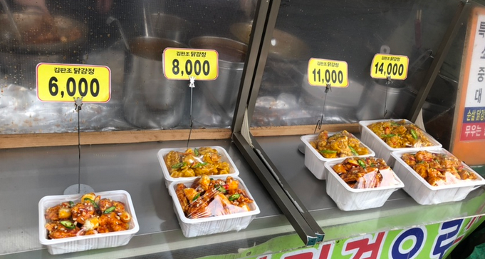 김판조 닭강정 옆을 지나가면 항상 사람들이 붐비거나 줄이 길게 서있어요.